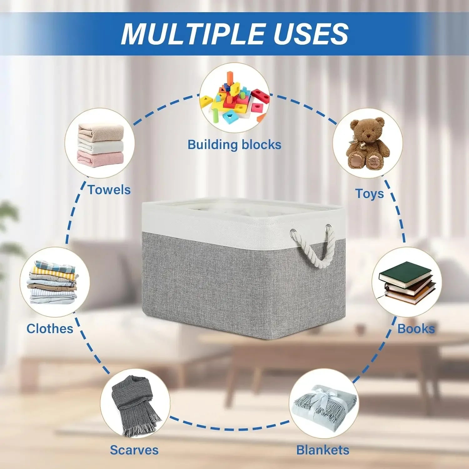 📌 Caractéristiques : ✅ Matériau : Tissu en lin ✅ Design : Compartiments à double couche ✅ Atouts : Pliable, poignées portables ✅ Zones d’utilisation : Chambre, salle de bain, buanderie, rangement de jouets ✅ Fonction : Rangement des vêtements, jouets et articles ménagers ✅ Style : Solution moderne et minimaliste pour l’organisation à la maison