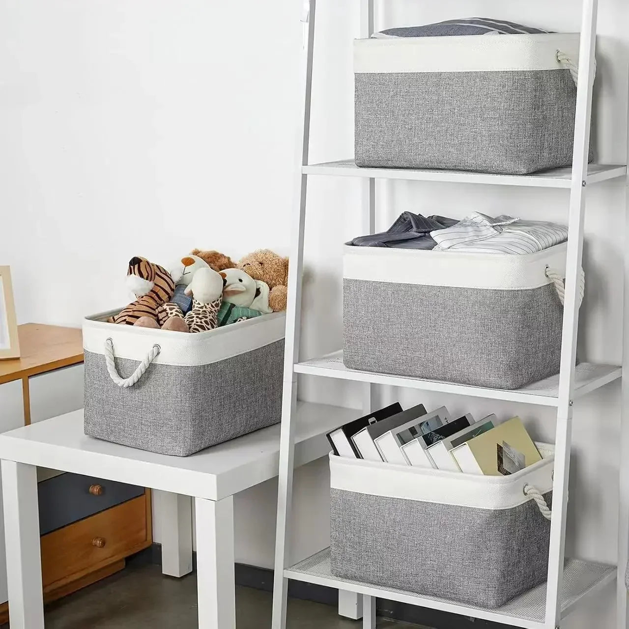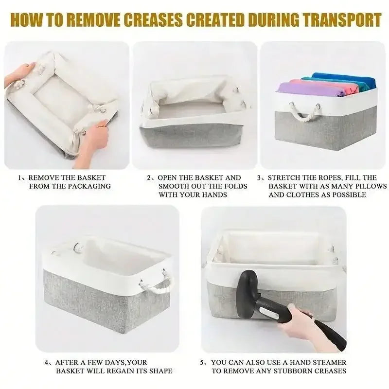 👜 Pliable avec poignées Conçu avec des poignées solides, le panier se transporte facilement d’une pièce à l’autre. Lorsqu’il n’est pas utilisé, il se plie à plat pour un rangement pratique, économisant de l’espace.