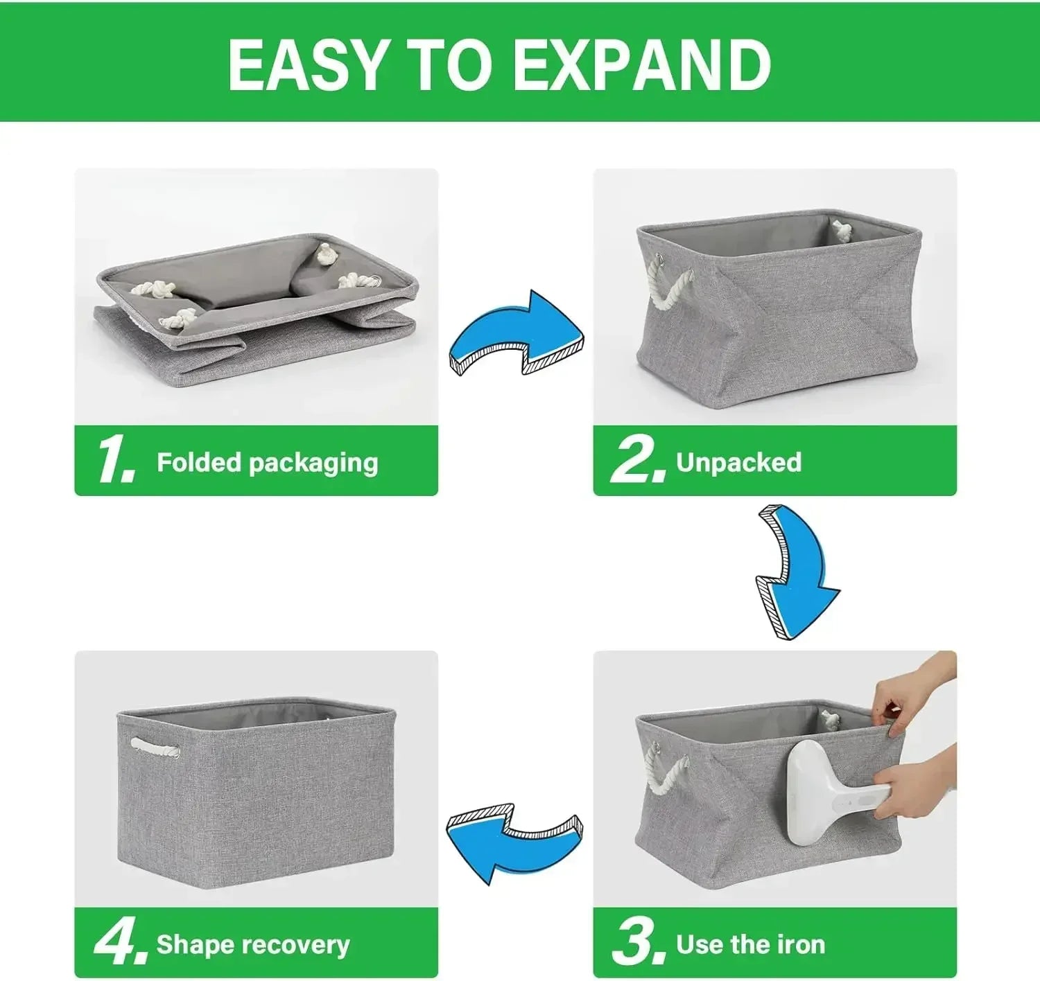 📌 Caractéristiques : ✅ Matériau : Fibre de lin (tissu en lin) ✅ Design : Pliable avec poignée de transport ✅ Espaces d’utilisation : Chambre, placard, nursery, étagère ✅ Fonction : Rangement de sous-vêtements, chaussettes, jouets pour bébé et petits objets ✅ Atouts : Léger, respirant, gain de place ✅ Style : Solution de rangement simple et pratique pour la maison